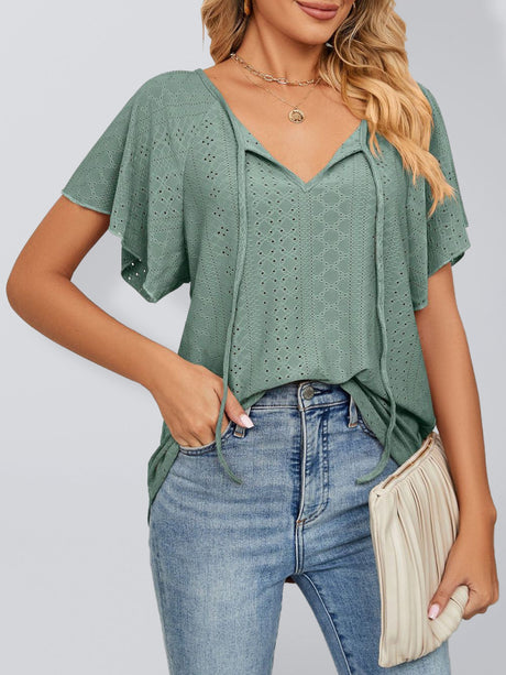 $42.91 USD$56.89Unit price /UnavailableWomen’s Solid Color V Neck Button Top Lace Cuffs Henley Top