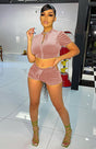 Ladies Velvet Short Solid Color Casual Sexy Two-piece Set - Pink / S is backordered and will ship as soon as it is back in stock.