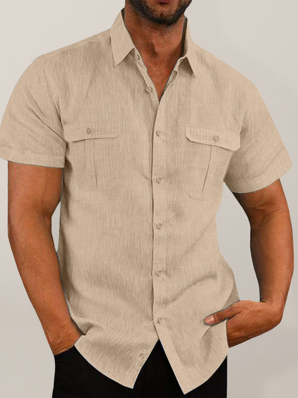 Men's Solid Color Double Pocket Short Sleeve Shirt Top