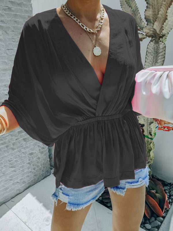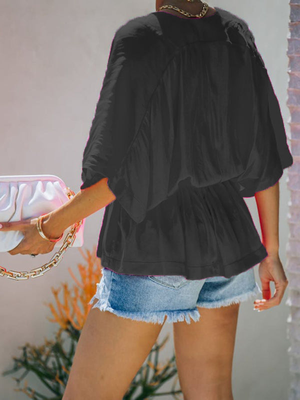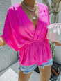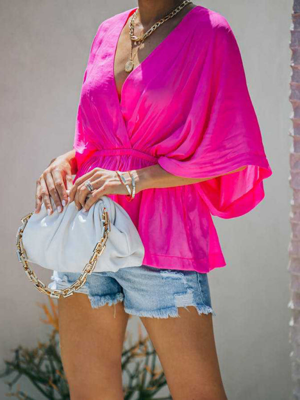New style cotton V-neck elastic waist casual fashion short-sleeved shirt - Rose Red / S is backordered and will ship as soon as it is back in stock.