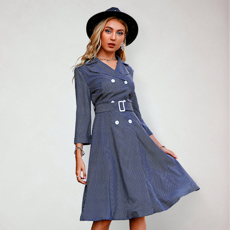Women’s Overcoat Inspired Long Sleeve Dress With Waist Belt And Buttoned Front