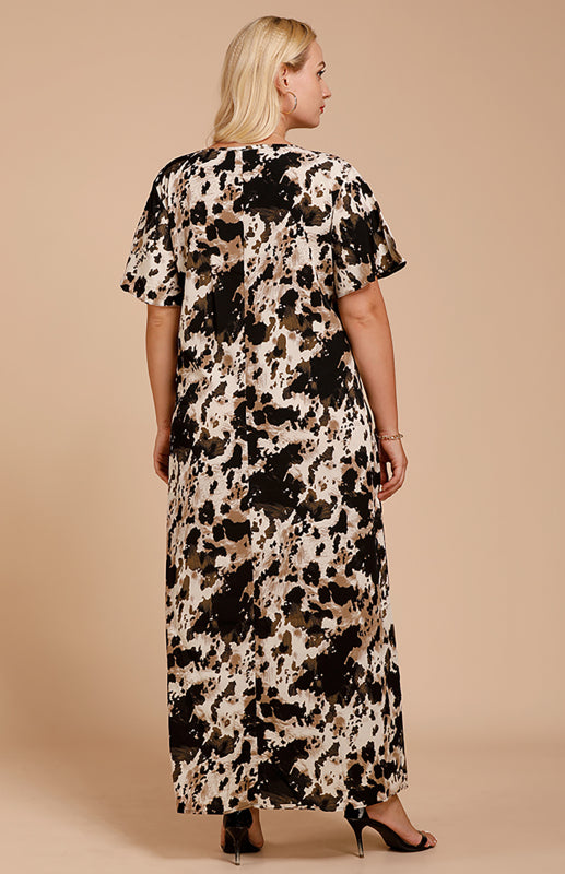 Women's Round Neck Leopard Print Long Dress - Coffe / XL is backordered and will ship as soon as it is back in stock.