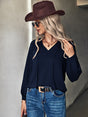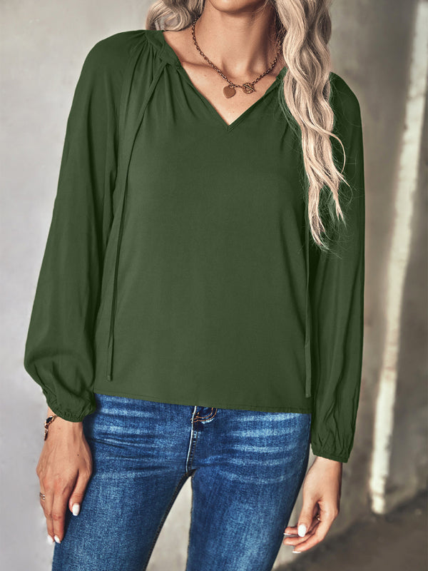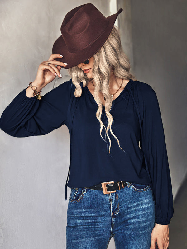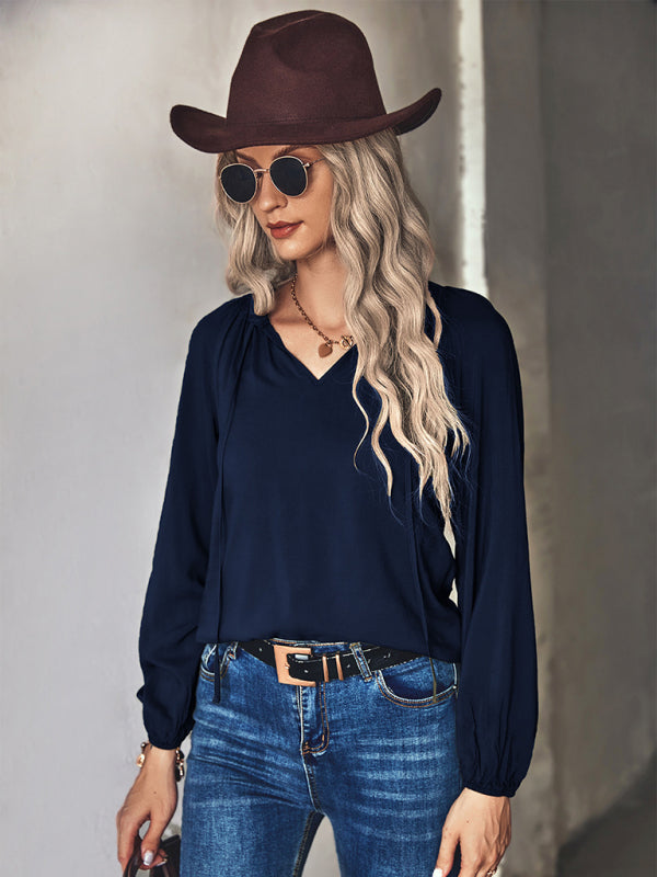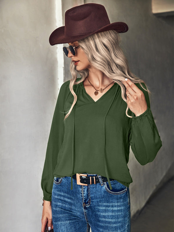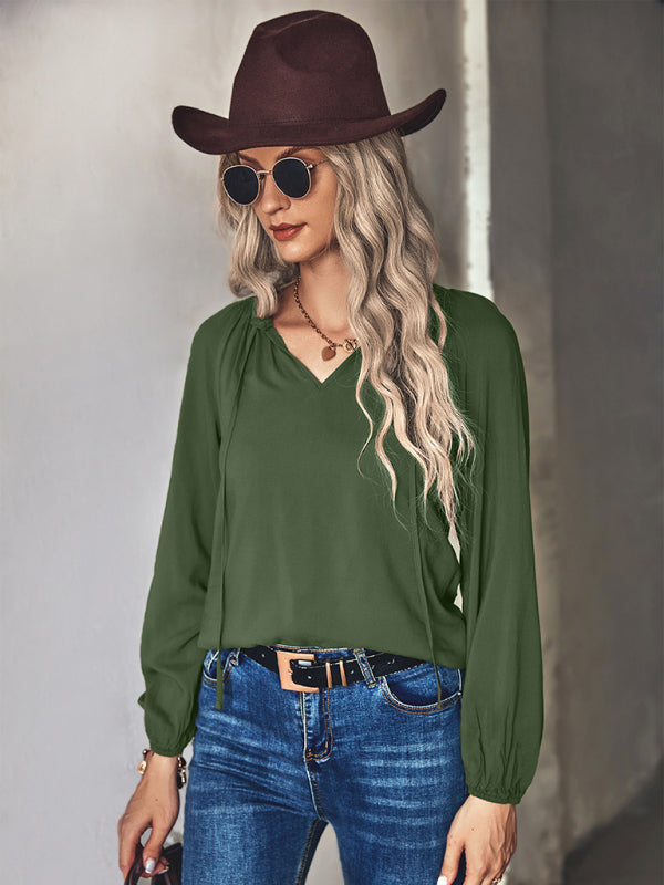 Women's Solid Color Tie Neck Tunic Shirt Top