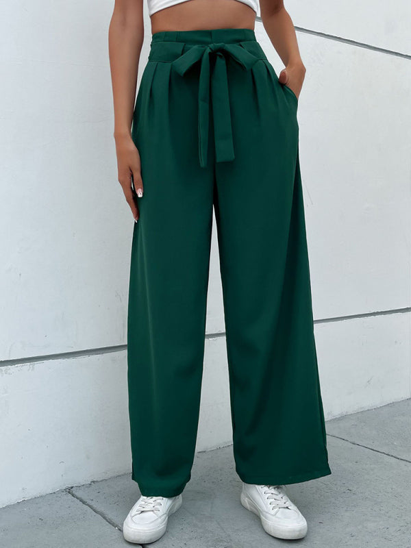 Women's Solid Color Tie Waist Wide Leg Pants - Dark green / S is backordered and will ship as soon as it is back in stock.