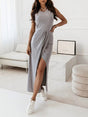 Women's Tank Top Sleeveless Long Slit Dress - Grey / S is backordered and will ship as soon as it is back in stock.