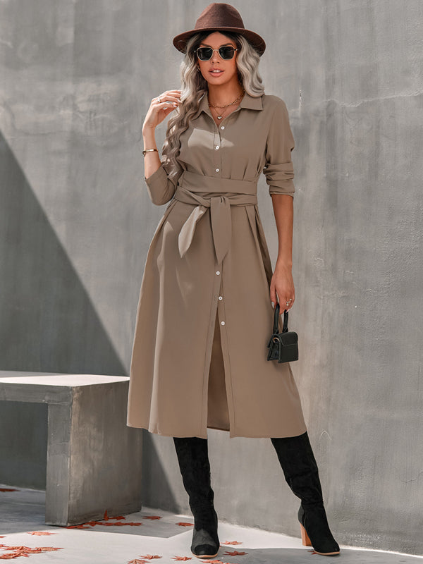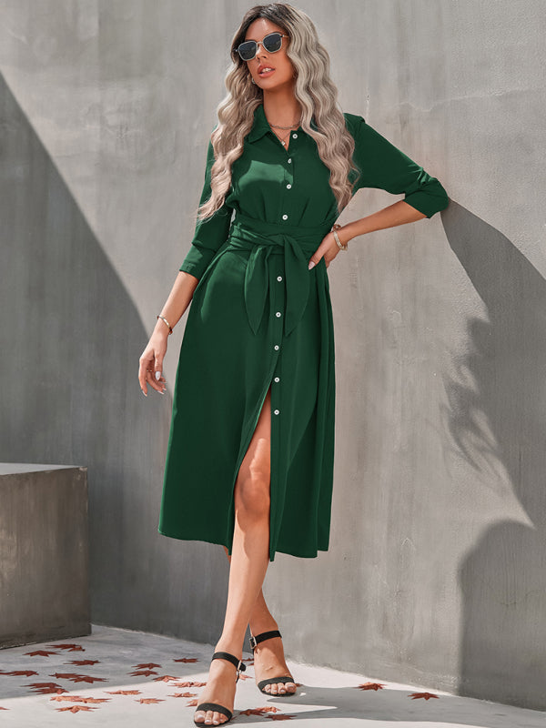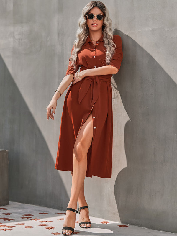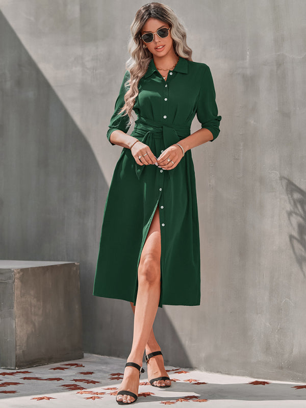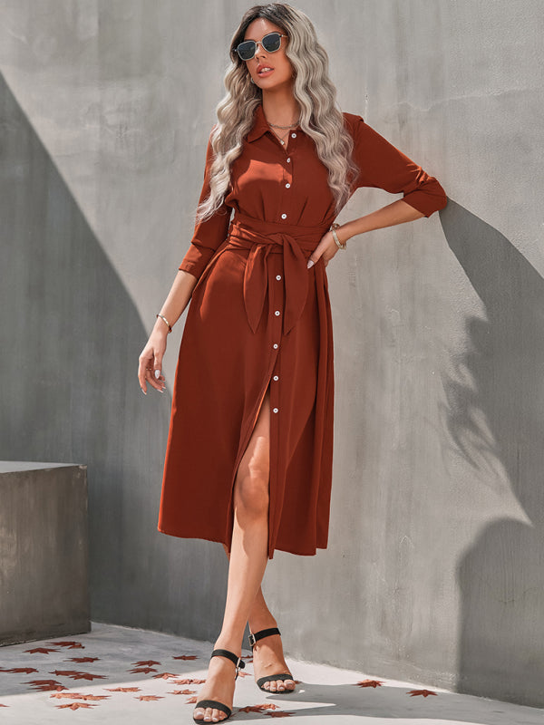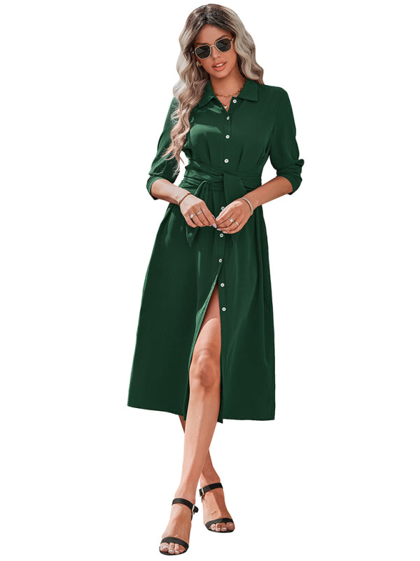 Womens temperament slim fit single breasted shirt dress