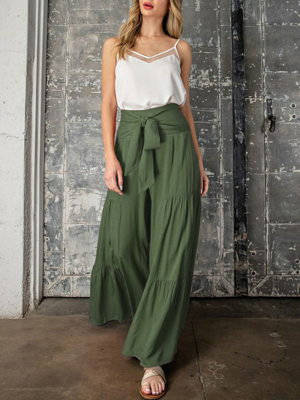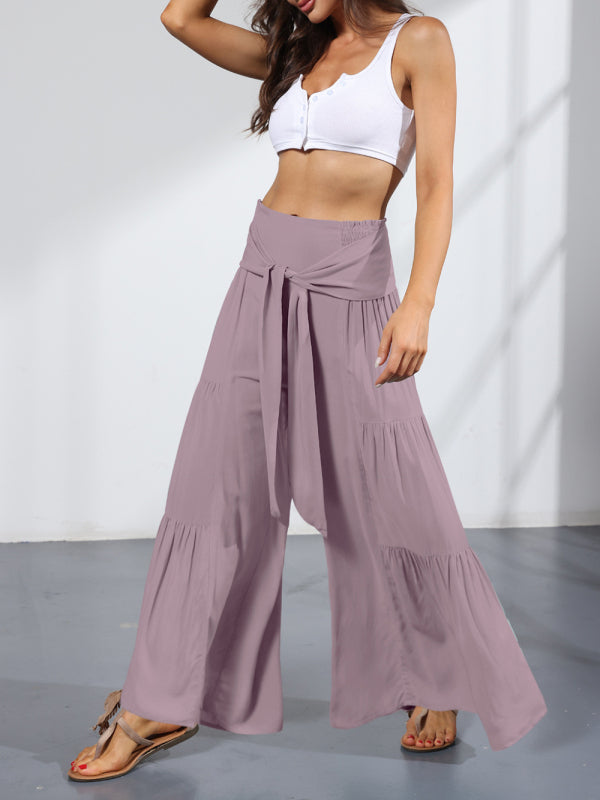 Women's woven strap elastic waist this kind of wide-leg A-type casual trousers