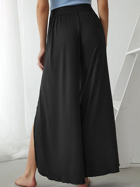 $49.00 USDUnit price /UnavailableWomen's Solid Color Elastic Waistband Corduroy Wide Leg Slit Trousers