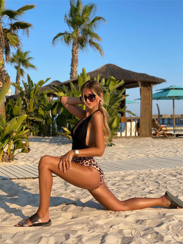 Swimsuit women's one-piece halter sexy color-block belly-covering bikini swimsuit - Black / S is backordered and will ship as soon as it is back in stock.