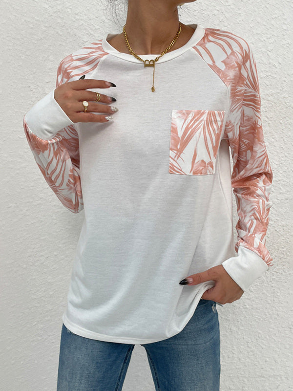 Women's Round Neck Pullover Fashion Patchwork Top - Black / S is backordered and will ship as soon as it is back in stock.