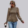 Women’s High Collar Ruffle Long Sleeve Blouse With Pleated Trim - Print 1 / S is backordered and will ship as soon as it is back in stock.