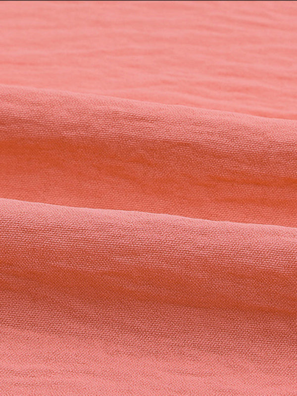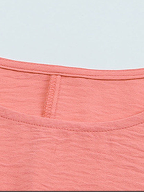 Women’s Solid Color Loose Fit Blouse With Ruffled Mid Length Sleeves