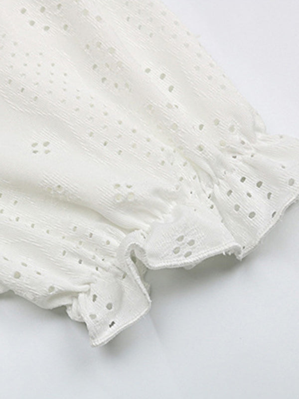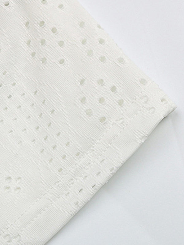 Women's solid color V-neck hollow short-sleeved blouse - White / S is backordered and will ship as soon as it is back in stock.