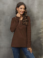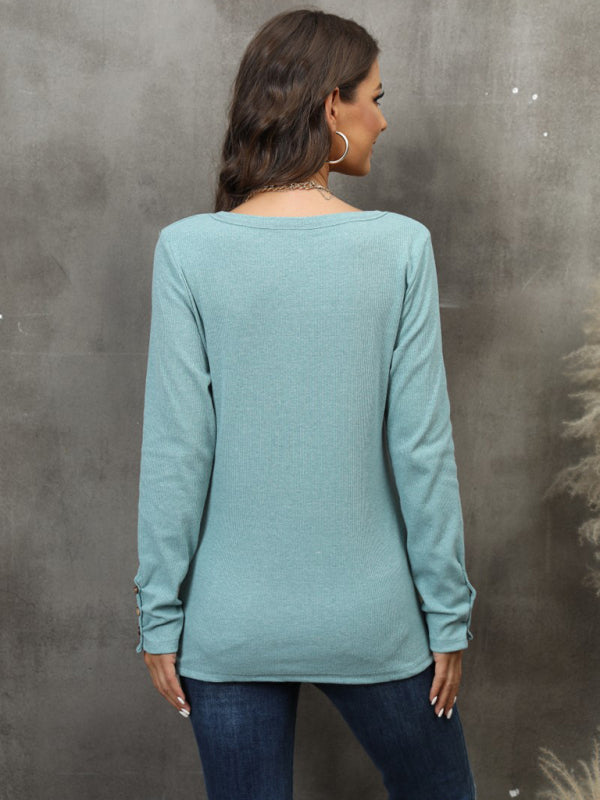 Women's Solid Color Waffle Knit Long Sleeve Henley Top