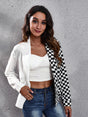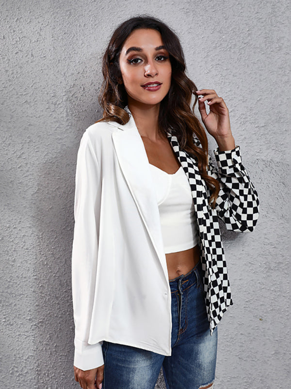Women's suit collar checkerboard zebra stitched shirt - Black / S is backordered and will ship as soon as it is back in stock.