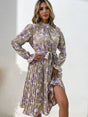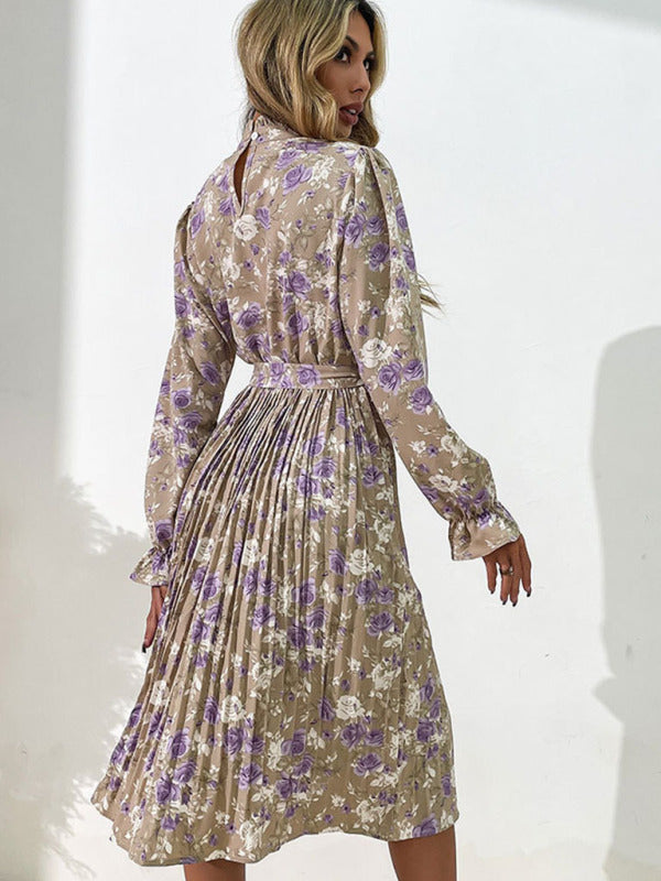 Fashion women's printed long -sleeved half -high -neck dress