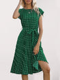 Women's Polka Dot Short Sleeve Pleated Midi Dress