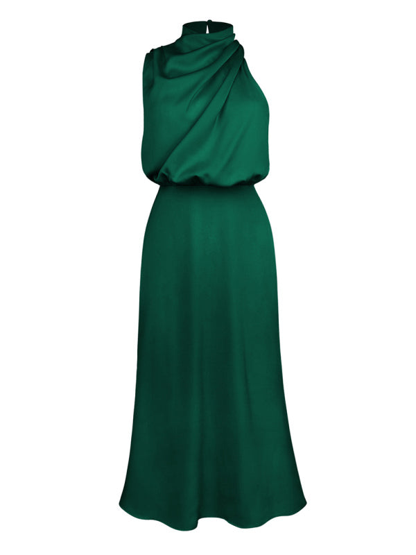 Women's Solid Color Halter Neck Satin Midi Dress - Pale green / S está agotado y se enviará tan pronto como vuelva a estar disponible.