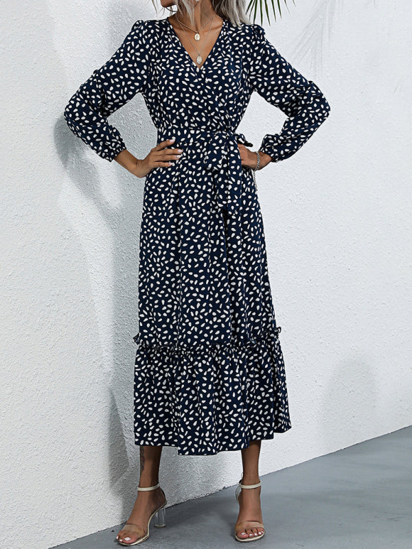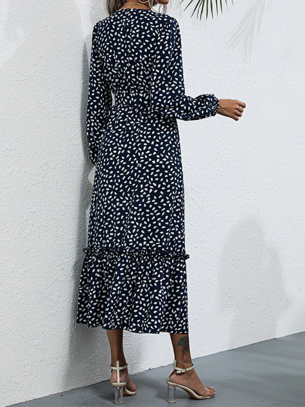Women's temperament black polka dot long-sleeved dress - Green / S está agotado y se enviará tan pronto como vuelva a estar disponible.