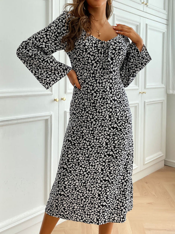 Women's backless print long-sleeved dress - Black / S está agotado y se enviará tan pronto como vuelva a estar disponible.