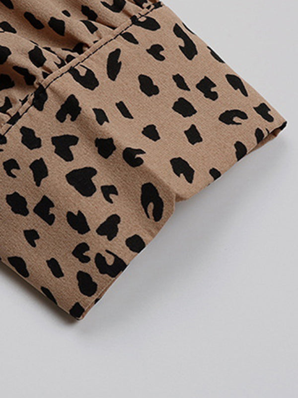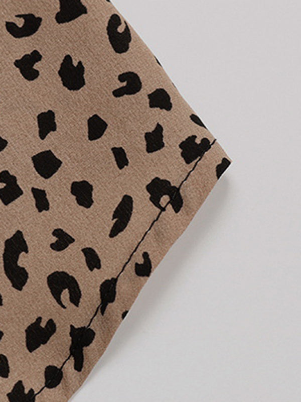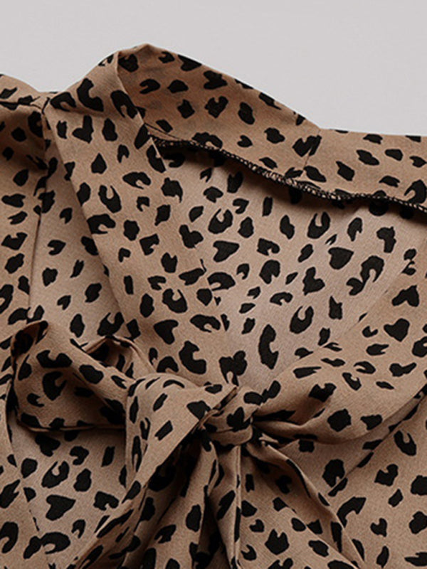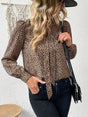 Women's Commuter Leopard Print Tie Shirt - Khaki / S está agotado y se enviará tan pronto como vuelva a estar disponible.