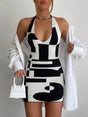Women's Contrast Print Knit Sweater Minidress - White / S está agotado y se enviará tan pronto como vuelva a estar disponible.