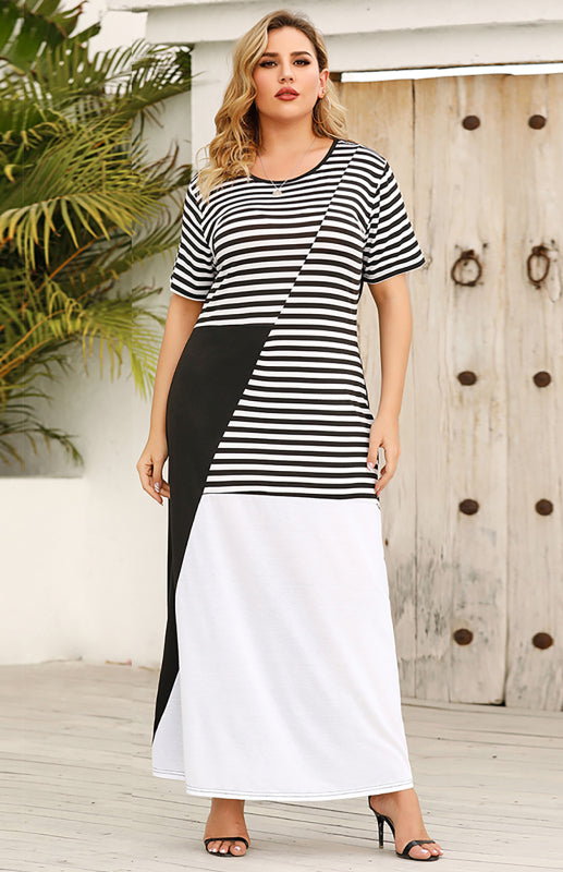 Women's Crew Neck Striped Colorblock Dress - Black / XL está agotado y se enviará tan pronto como vuelva a estar disponible.