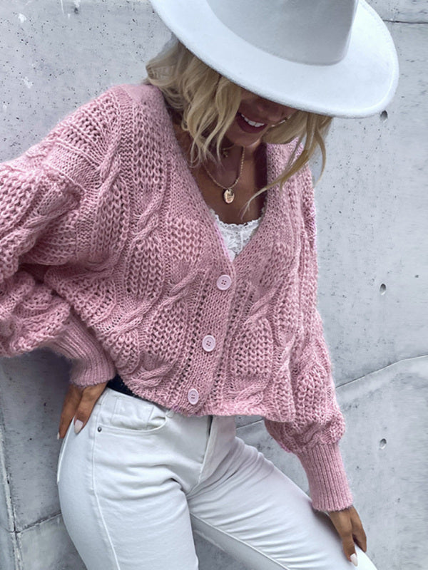 Women's Cropped Single Breasted Knit Sweater Cardigan