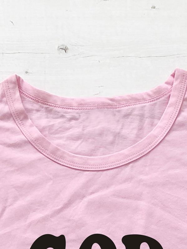 Women's Cute Letters Graphic Short Sleeve Top - Pink / S está agotado y se enviará tan pronto como vuelva a estar disponible.