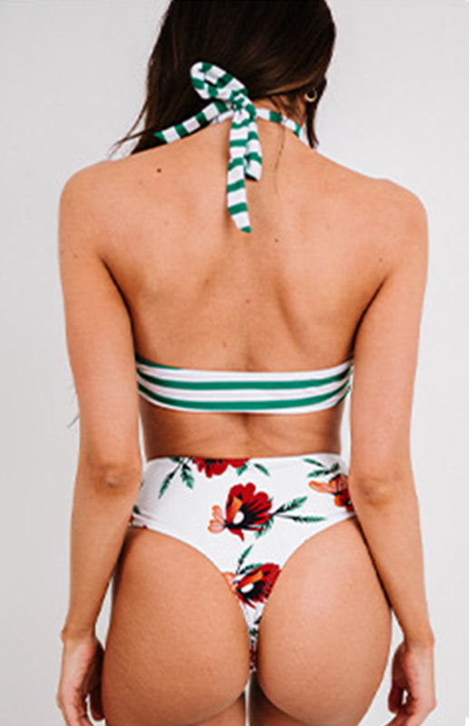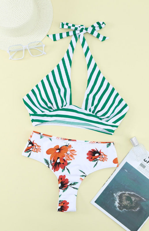 Women's Cutout Halter Neck Printed Split Swimsuit