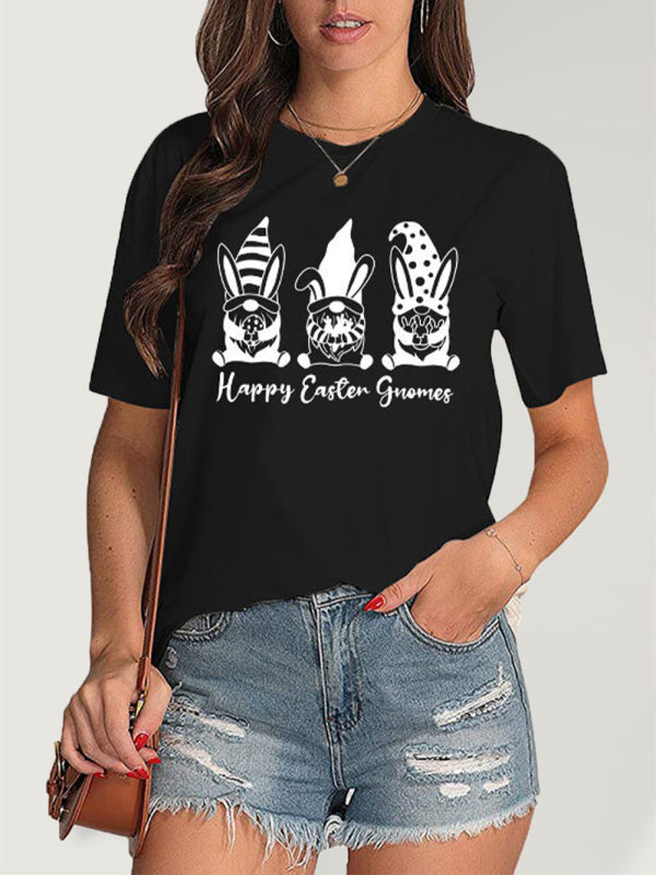 Women's Easter Rabbits Graphic Print Short Sleeve T-shirt