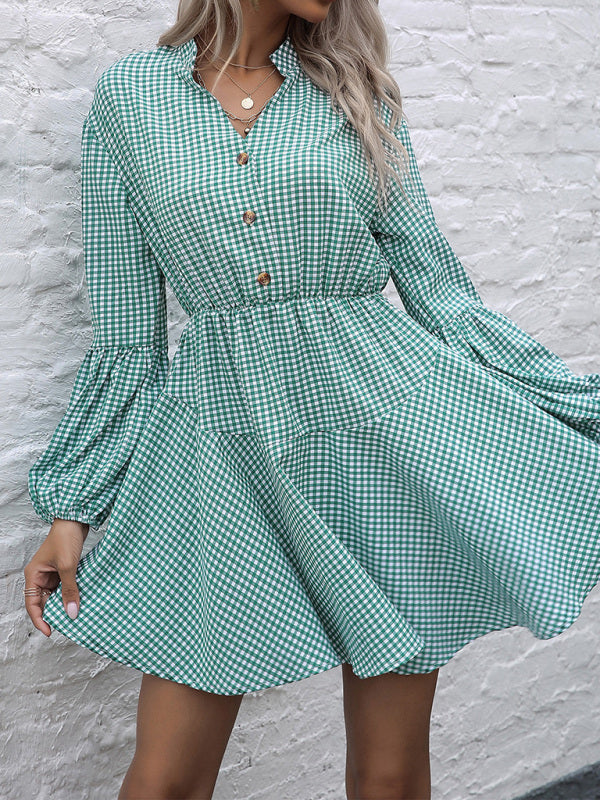 Women's fashion standing collar leopard print dress - Green / S está agotado y se enviará tan pronto como vuelva a estar disponible.
