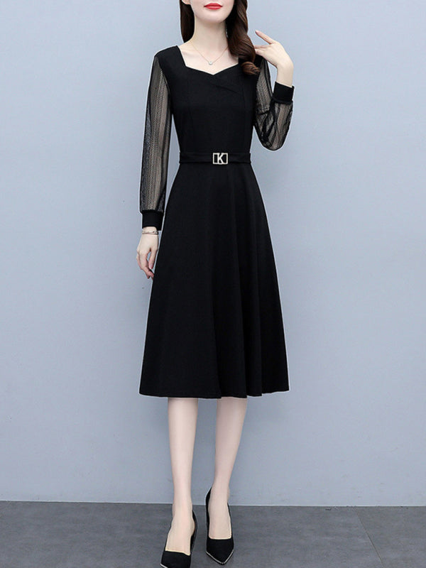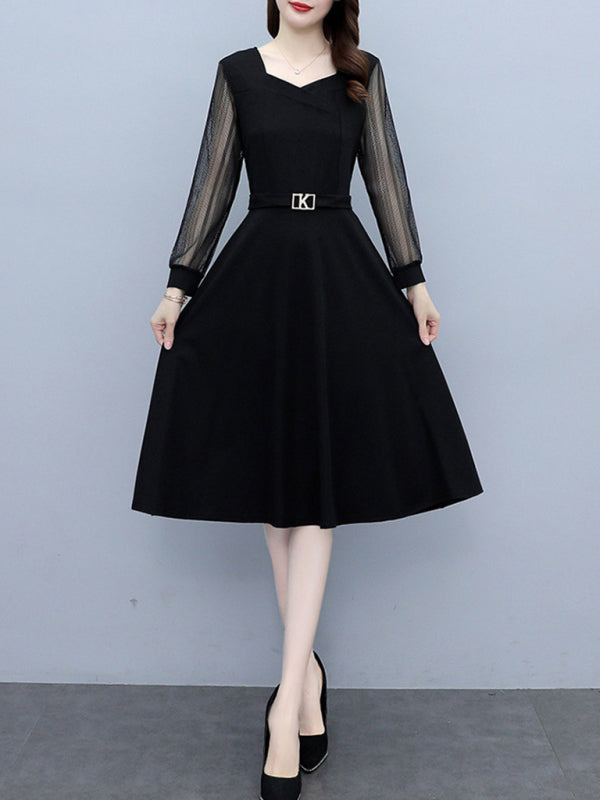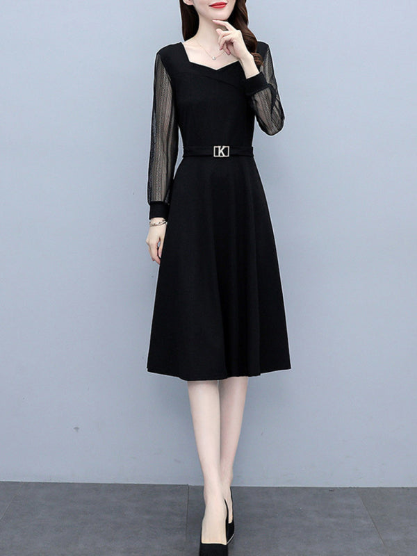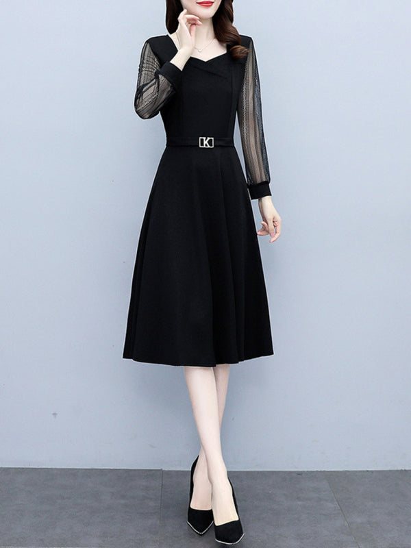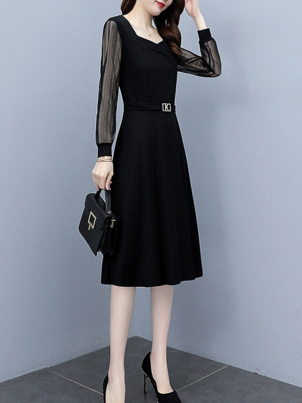 Women's fashionable and fashionable lace long sleeve slim dress - Black / M está agotado y se enviará tan pronto como vuelva a estar disponible.