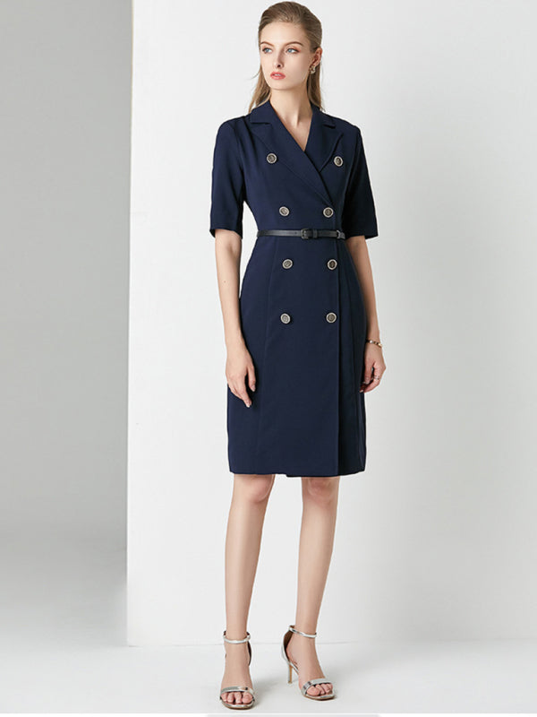 Women's Intellectual Professional Dress Temperament Suit Collar Solid Color Waist Skirt