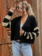 women's knitted striped sweater short coat cardigan - Black / S está agotado y se enviará tan pronto como vuelva a estar disponible.