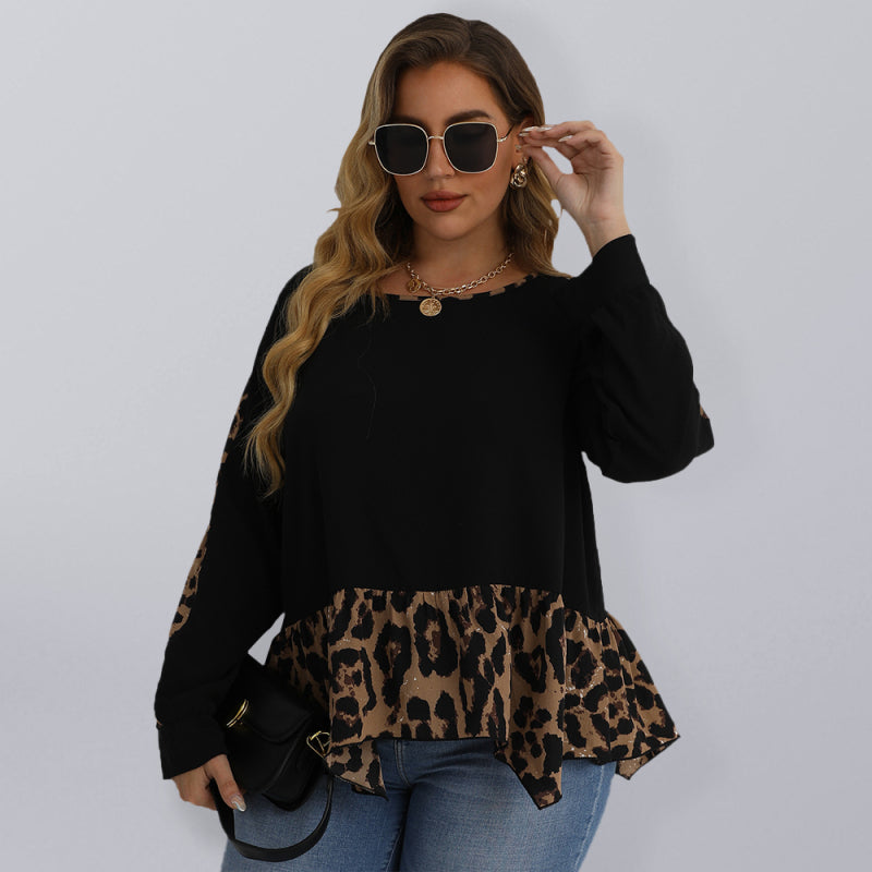 Women's Leopard Print Oversized Long Sleeve Top