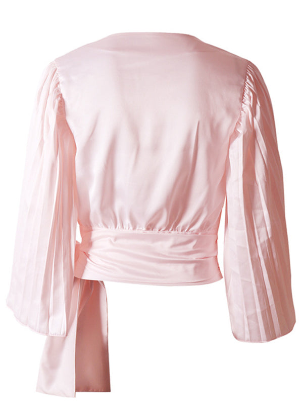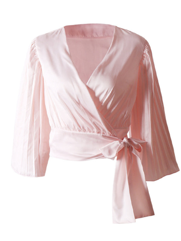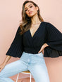 Women's long -sleeved thin V -neck flared sleeve top - Black / S está agotado y se enviará tan pronto como vuelva a estar disponible.