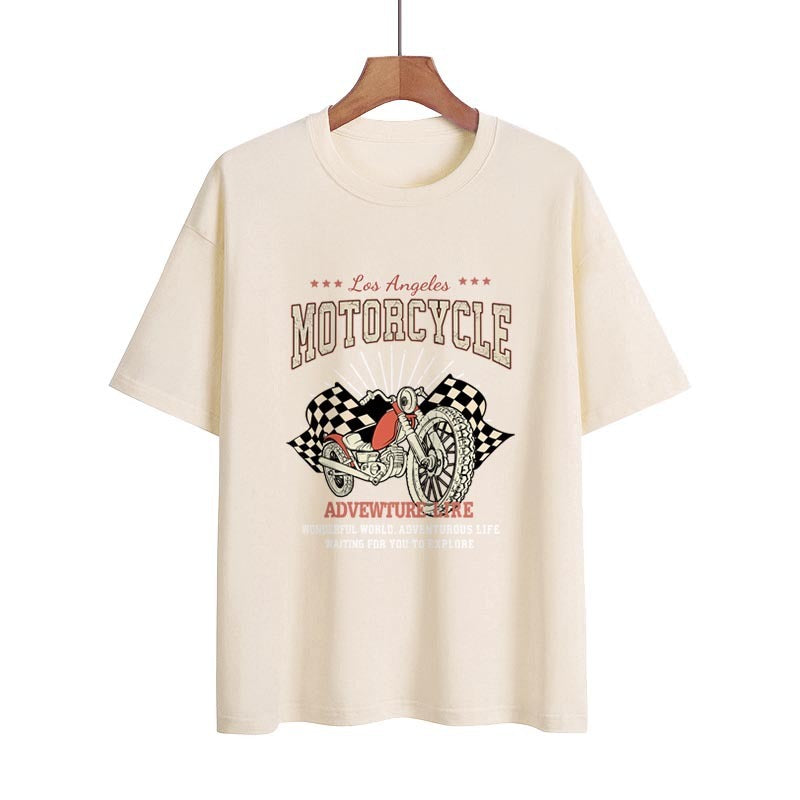 Get revved up for a two-wheel road trip in this roomy soft tee with vintage-inspired graphics.