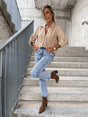 Women's new simple solid color pull-sleeve V-neck button lapel shirt - Khaki / S está agotado y se enviará tan pronto como vuelva a estar disponible.