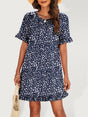 Women's Printed Ruffle Stretch Knit Dress - Champlain Blue / S está agotado y se enviará tan pronto como vuelva a estar disponible.