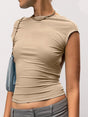 Women's Solid Color Crew Neck Open Back Crop T-shirt - Khaki / S está agotado y se enviará tan pronto como vuelva a estar disponible.
