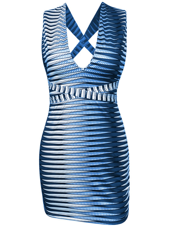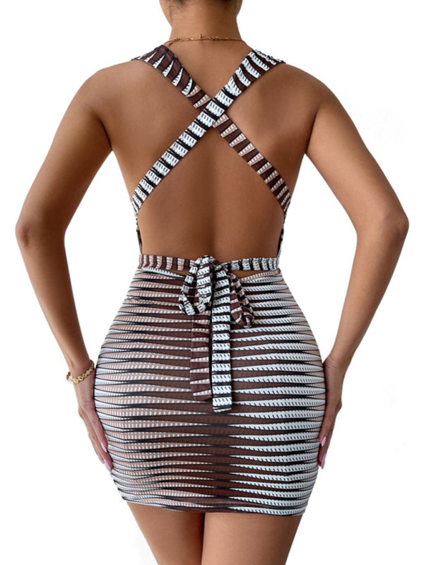 Women's striped straps, sleeveless off -back dress - Brown / S está agotado y se enviará tan pronto como vuelva a estar disponible.