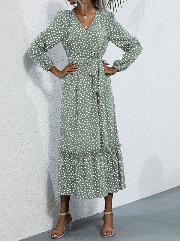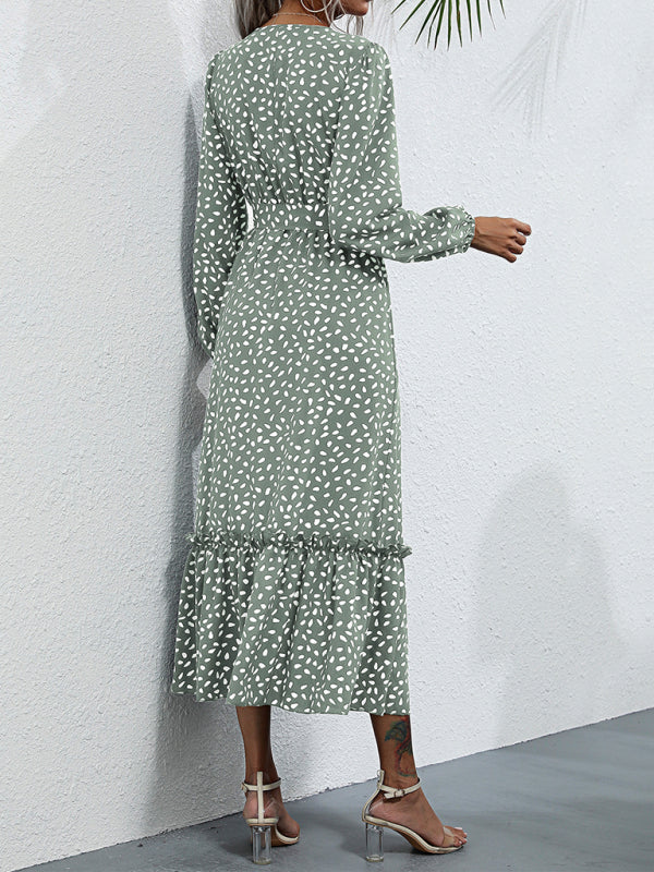 Women's temperament black polka dot long-sleeved dress - Green / S está agotado y se enviará tan pronto como vuelva a estar disponible.