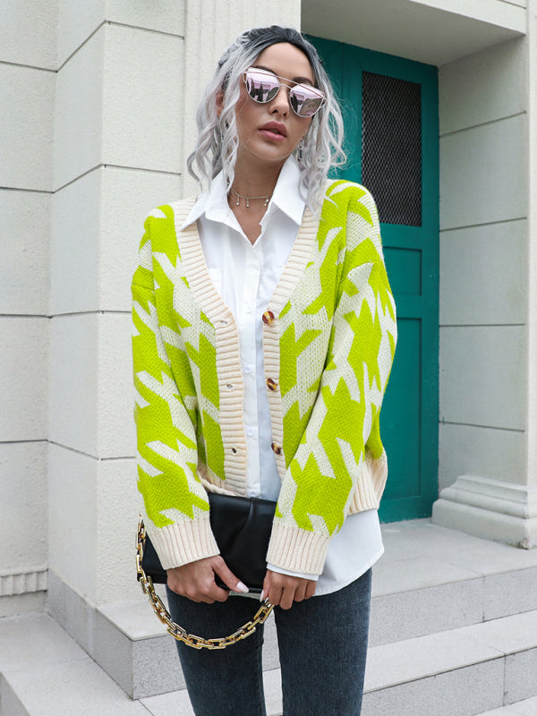 Women's thousand bird check breasted loose knit cardigan sweater - Black / S está agotado y se enviará tan pronto como vuelva a estar disponible.