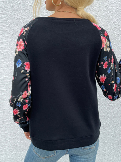 $38.40 USDPrecio unitario /AgotadoWomen's Round Neck Pullover Floral Long Sleeve Panel Casual Sweatshirt
