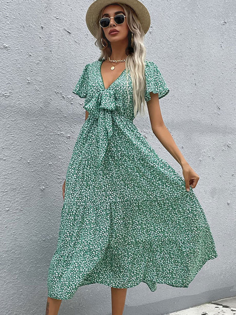 $27.74 USDPrecio unitario /AgotadoBack tie design sexy backless dress fresh and sweet short skirt popular ruffled print A-line skirt