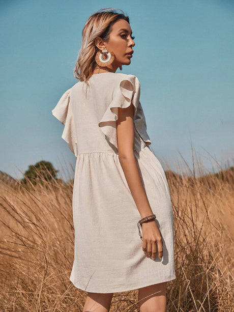 $42.08 USDPrecio unitario /AgotadoWomen's woven v-neck button-up large swing A-shaped small flying sleeve dress