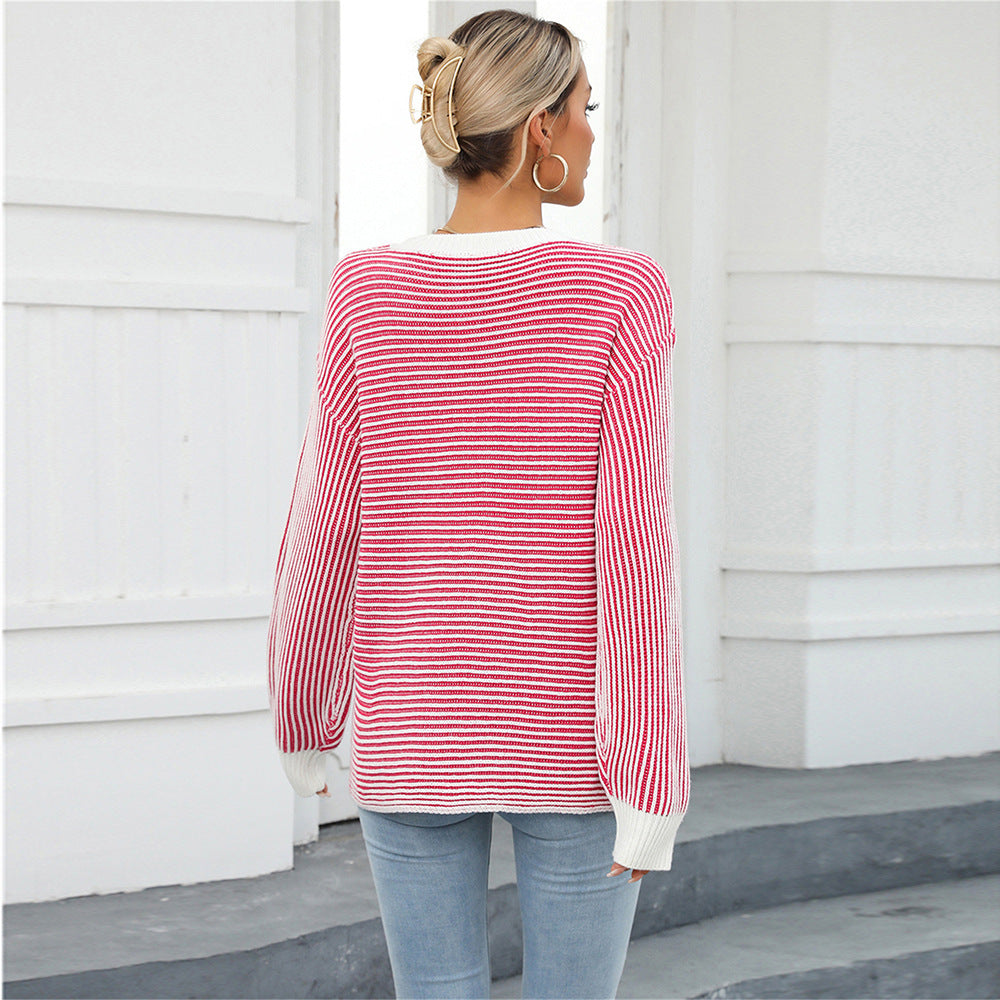 Pre-Order Autumn Winter Women's Pullover Sweater Striped Sweater Sweater