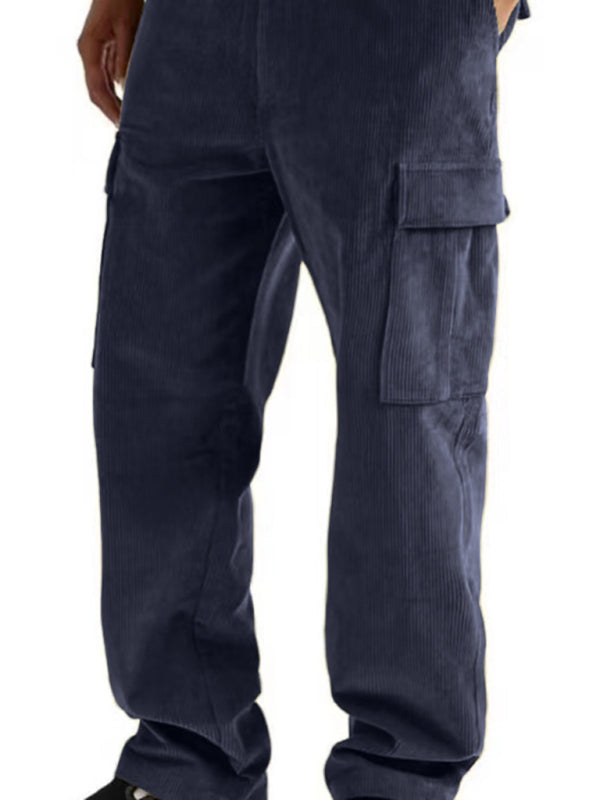 Corduroy multi-pocket straight trousers men's sweeping pants men's casual loose trousers