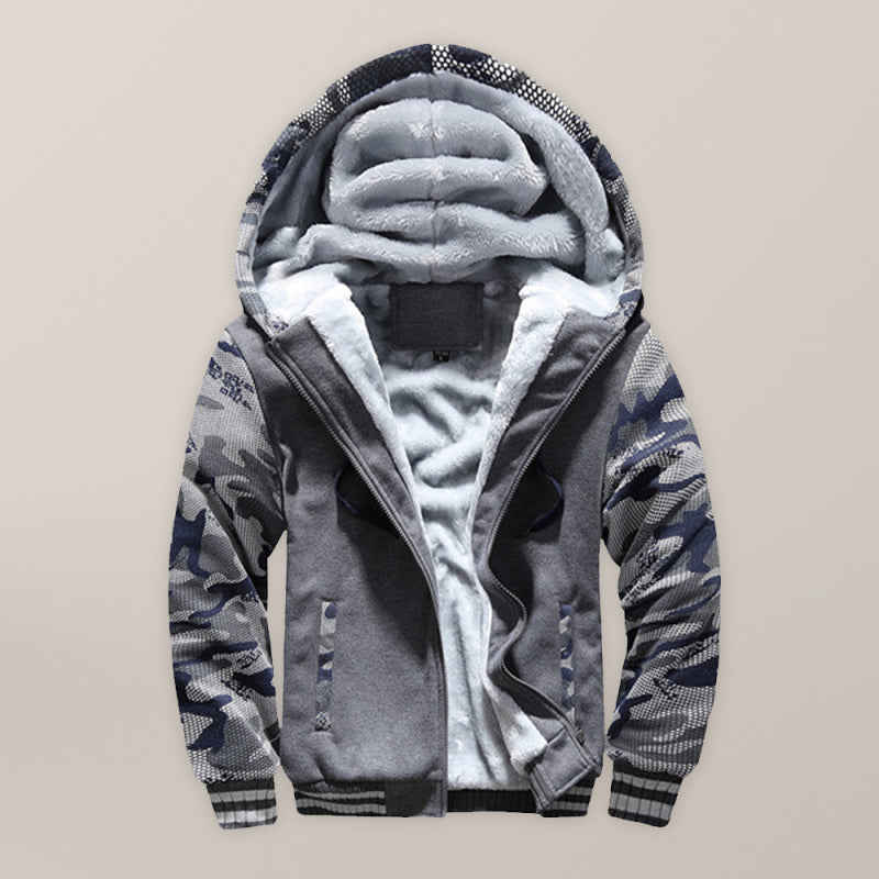 Men’s Camouflage Trim Faux Fur Lined Zip Up Hoodie - Grey / S está agotado y se enviará tan pronto como vuelva a estar disponible.
